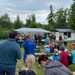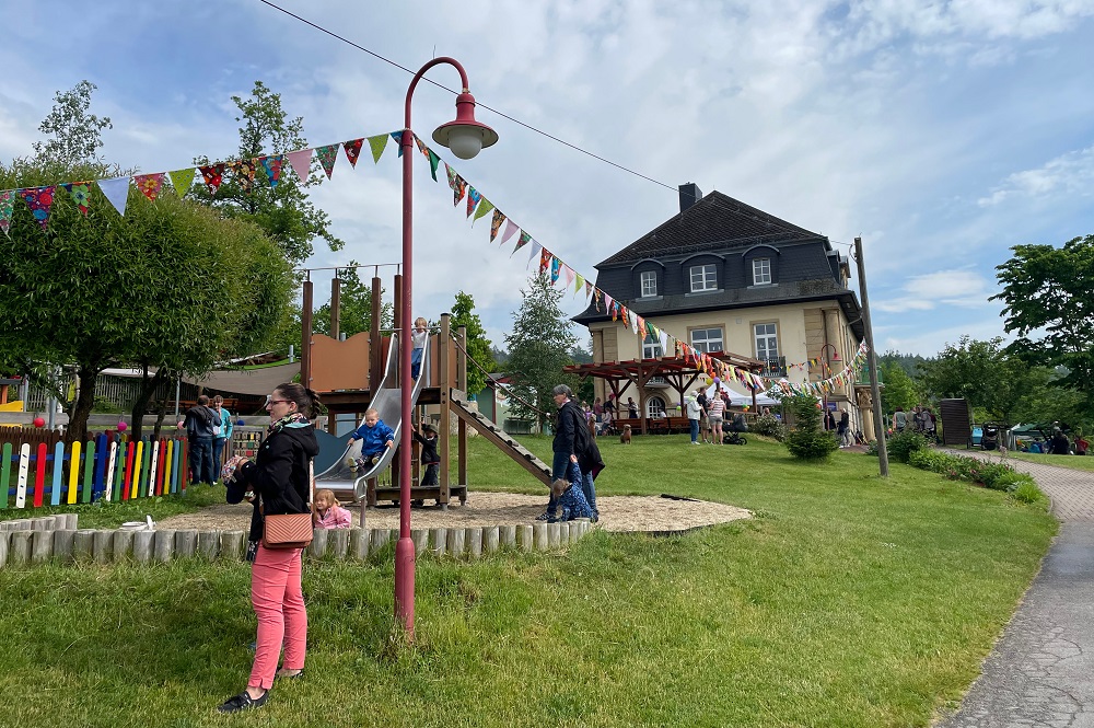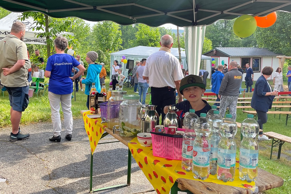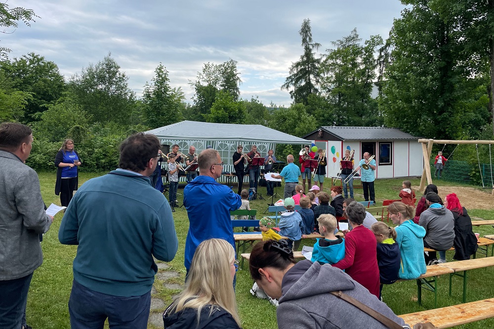 - Rasenfläche für Fußballspiel und Festlichkeiten