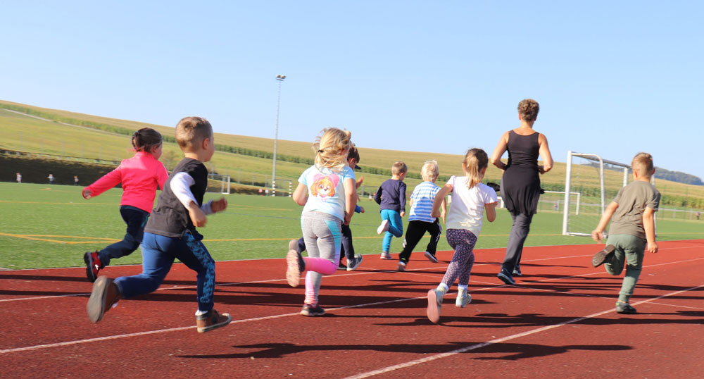 - 3 x wöchentlich ist Sport, nach Altersgruppen geteilt, in der Sportstätte der Grundschule