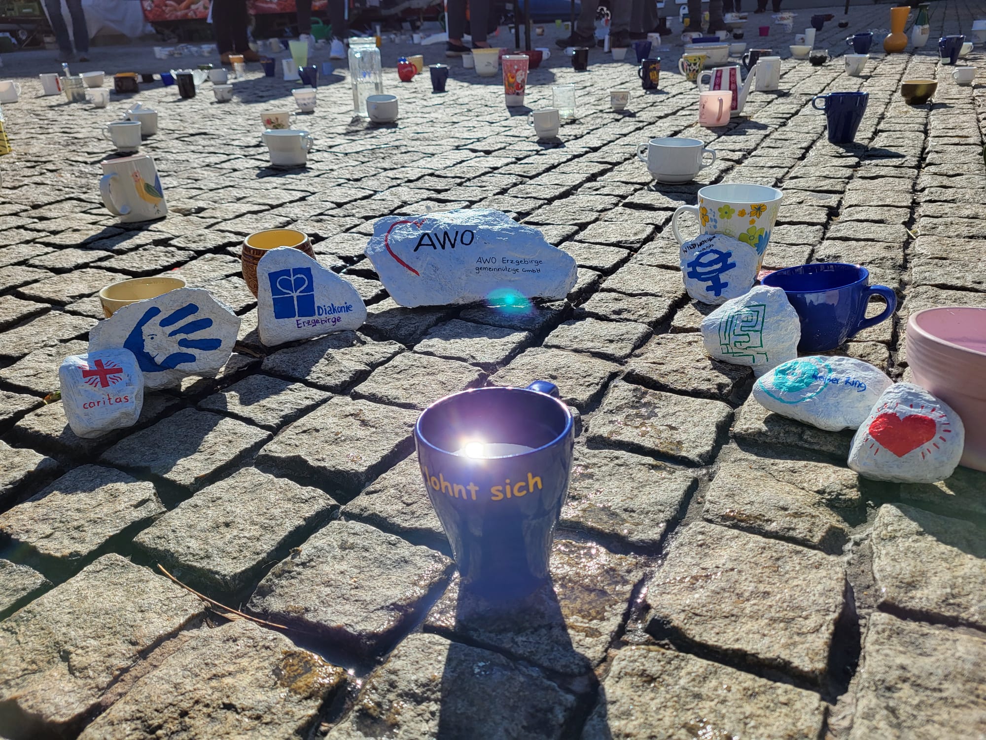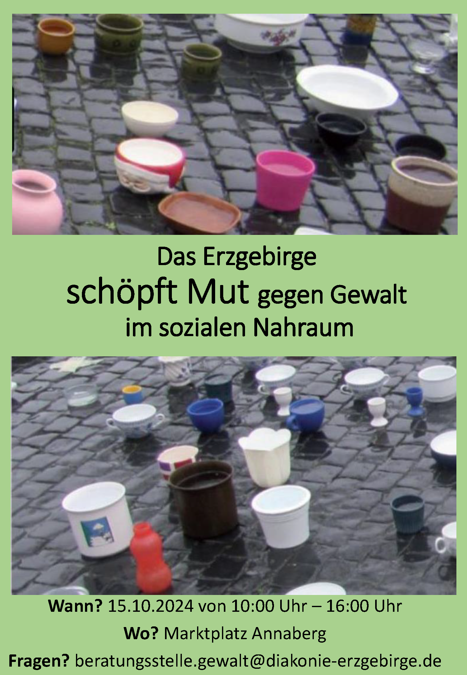 Im Oktober fand auf dem Annaberger Marktplatz die Aktion „Mut schöpfen“ statt. Die Mitarbeiter der spezialisierten Fachberatungsstellen, die im Erzgebirgskreis im Bereich Gewaltschutz arbeiten, stellten sich vor und standen den Interessierten für Fragen zur Verfügung. Viele wertvolle Gespräche wurden geführt, und wir haben viel Dank für unsere tägliche Arbeit erhalten. Vielleicht wurde sogar jedem Einzelnen einen Funken Mut ins Herz gelegt.